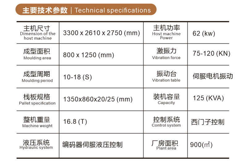 | 成型周期 (s) | 10-18(磚型區別) | 液壓系統 | 編碼器伺服液壓控制 |